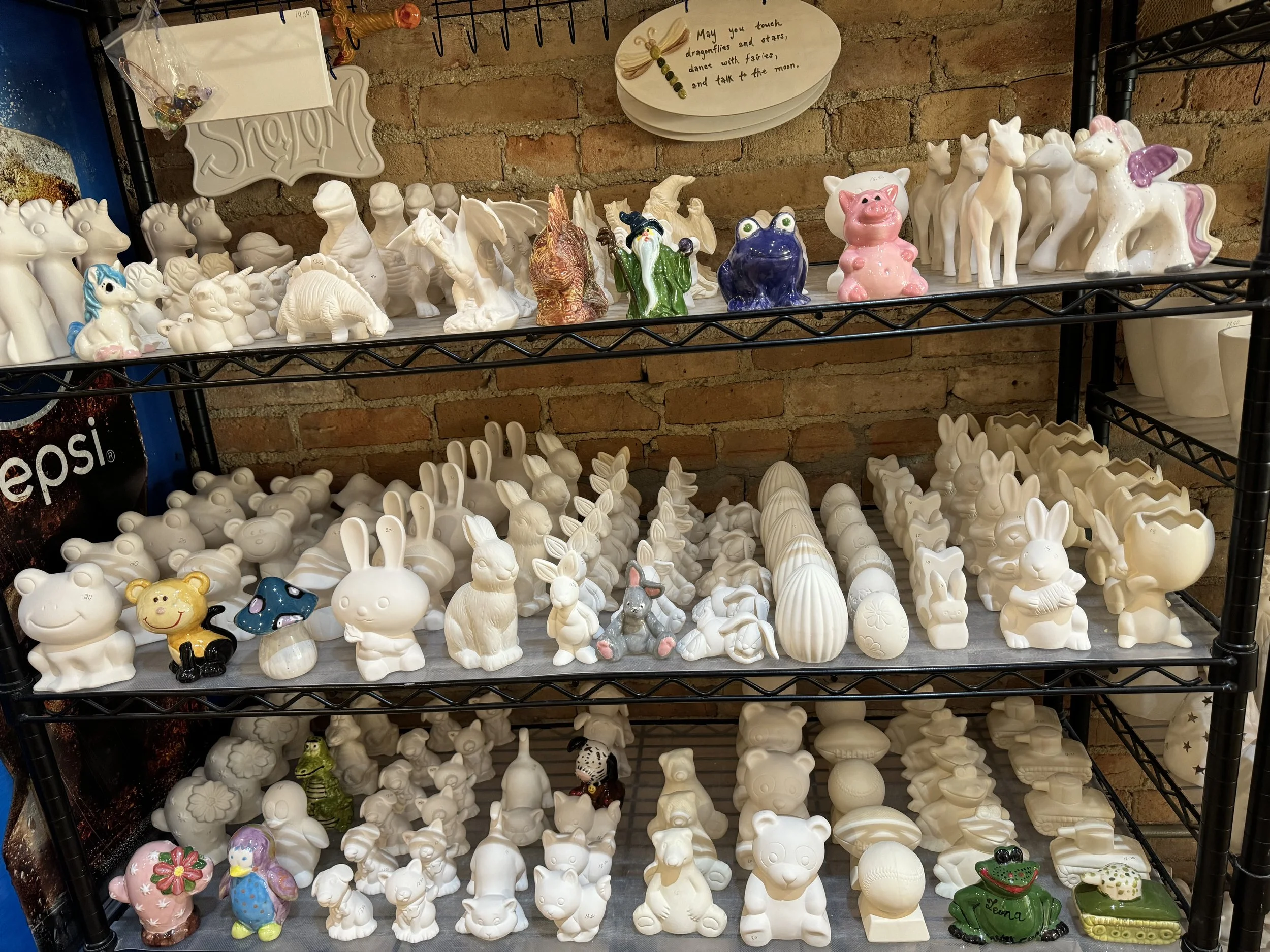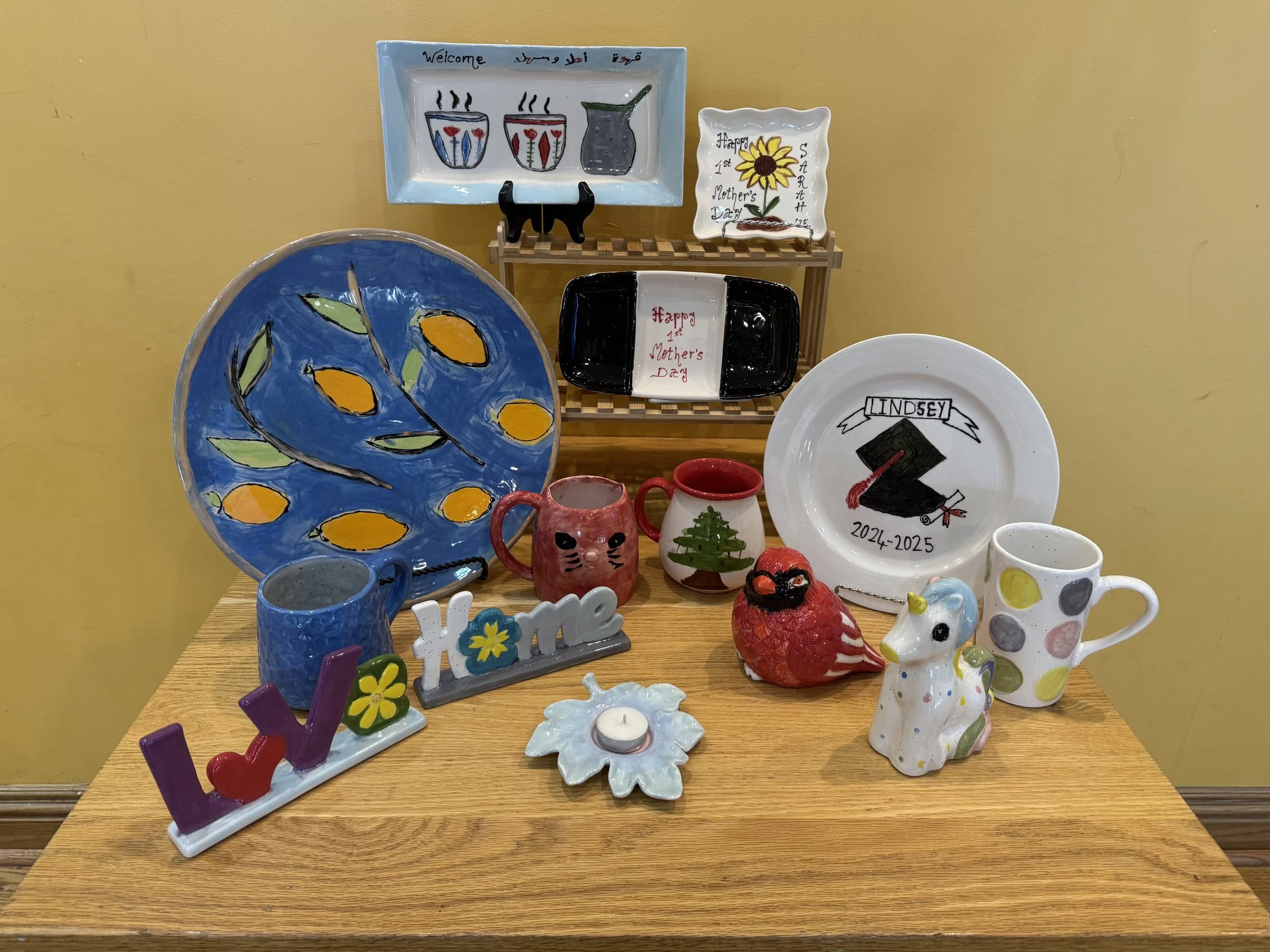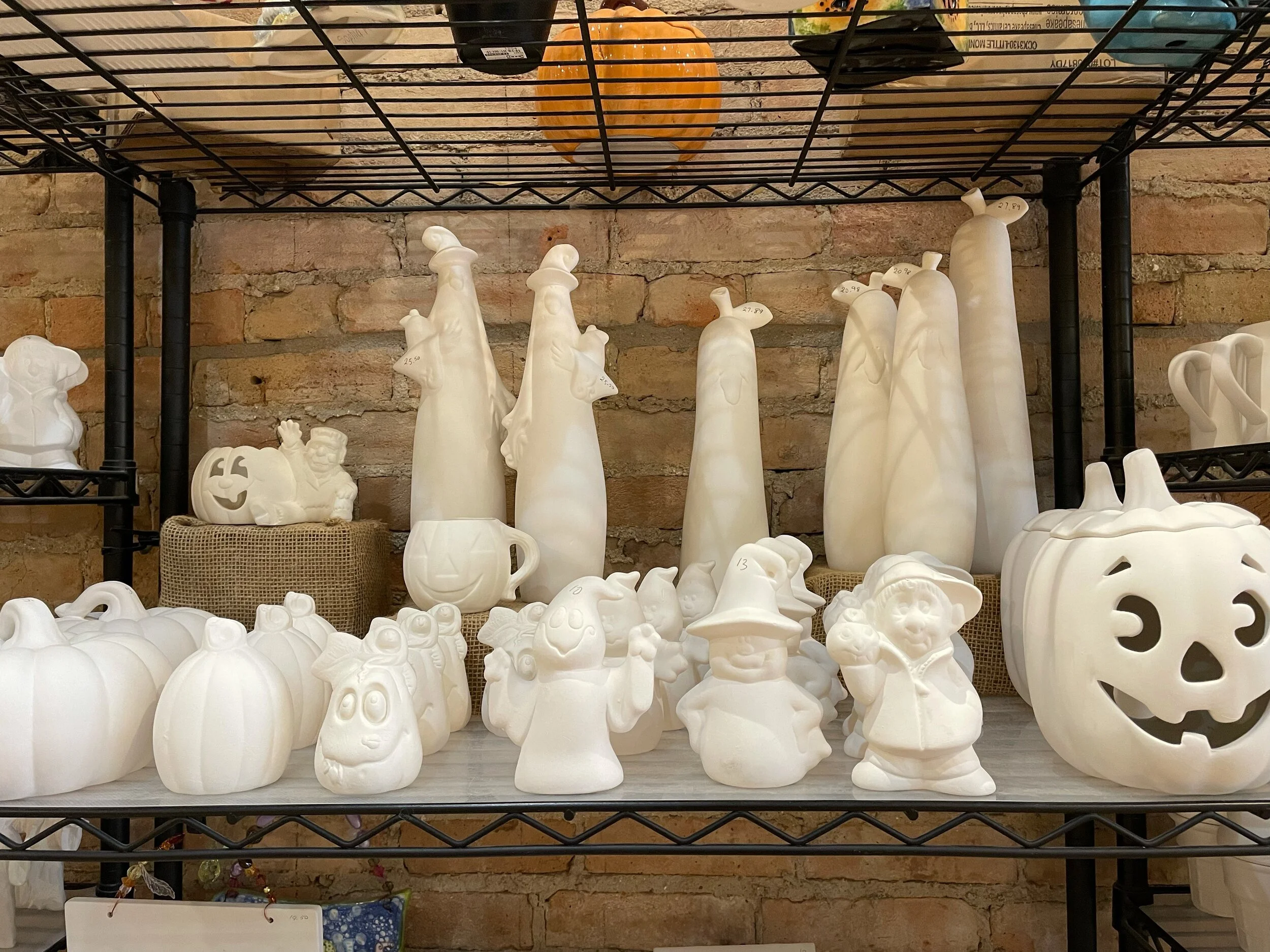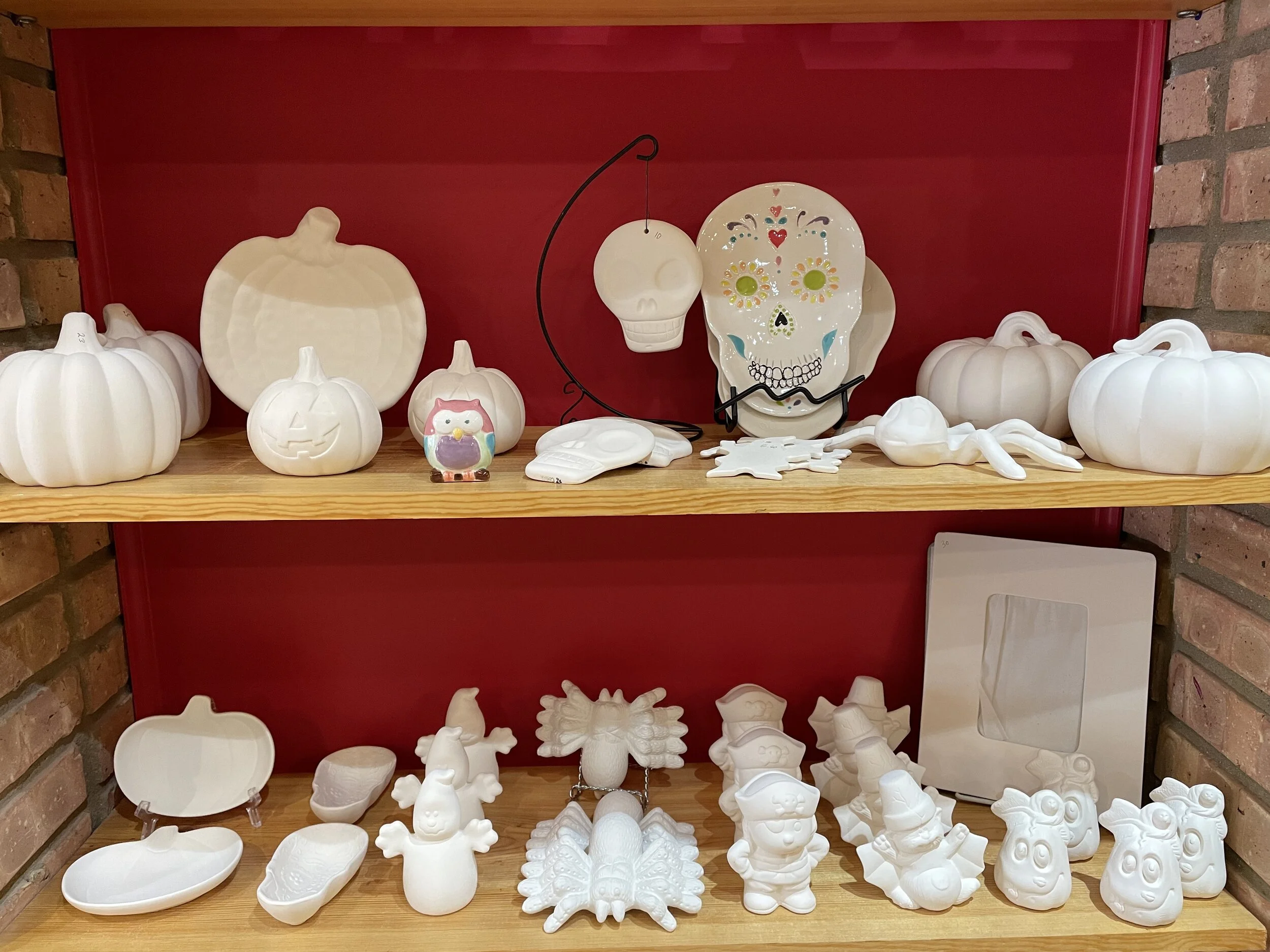 Take a look at the beautiful pieces our painters have created and get inspired to paint something yourself! We have a selection of over 150 pieces and have a rotating selection of seasonal and holiday pieces.
