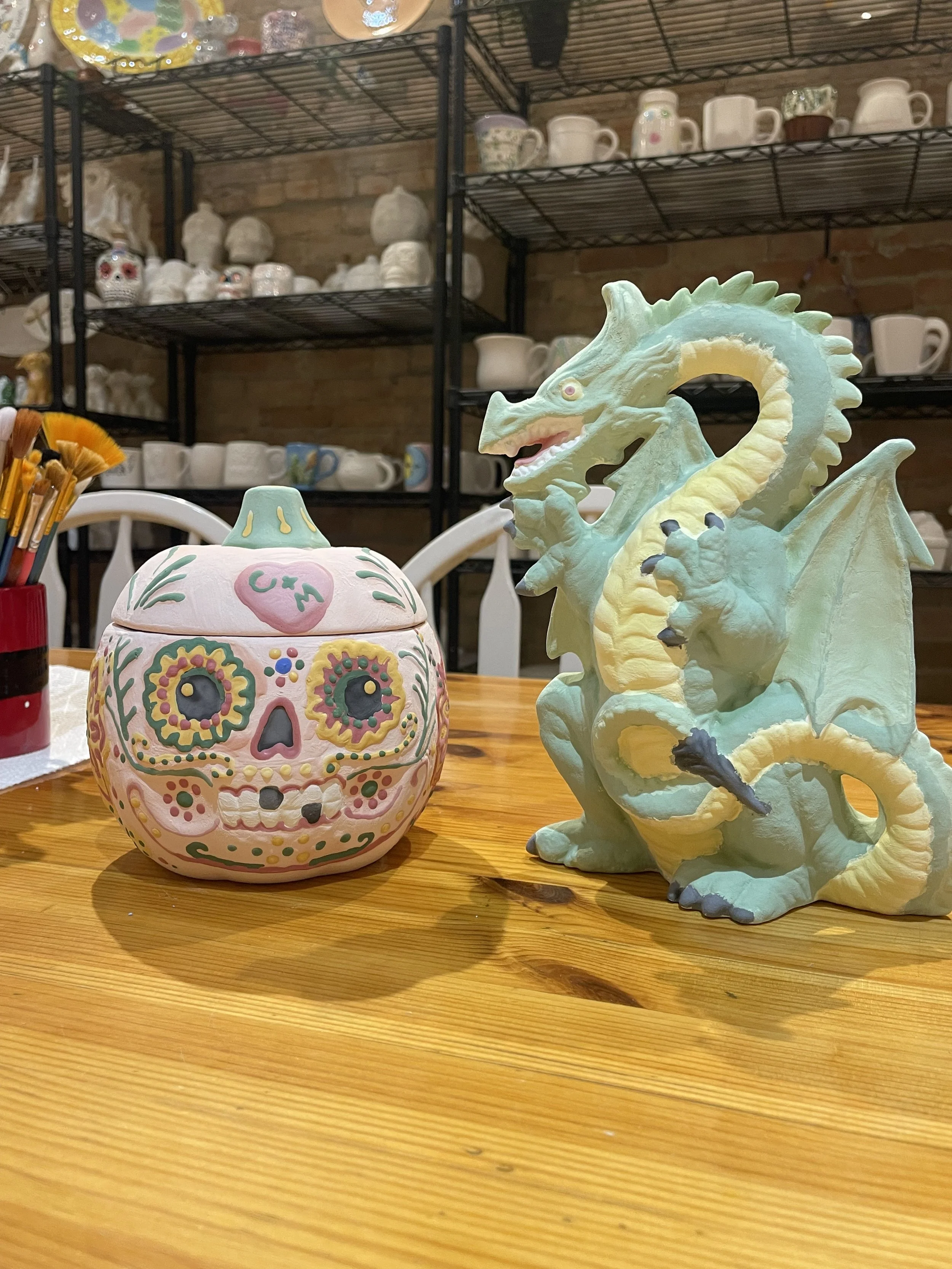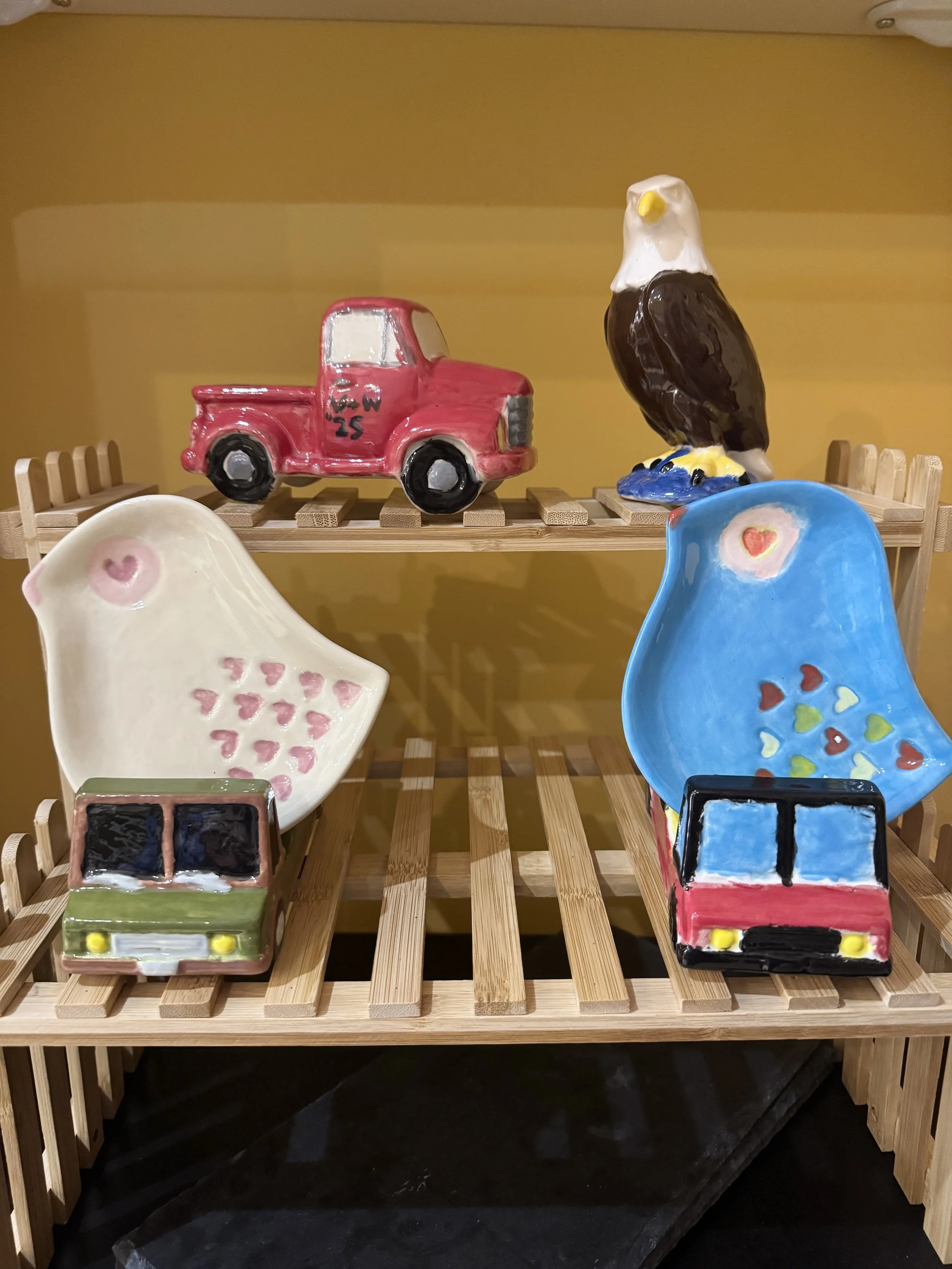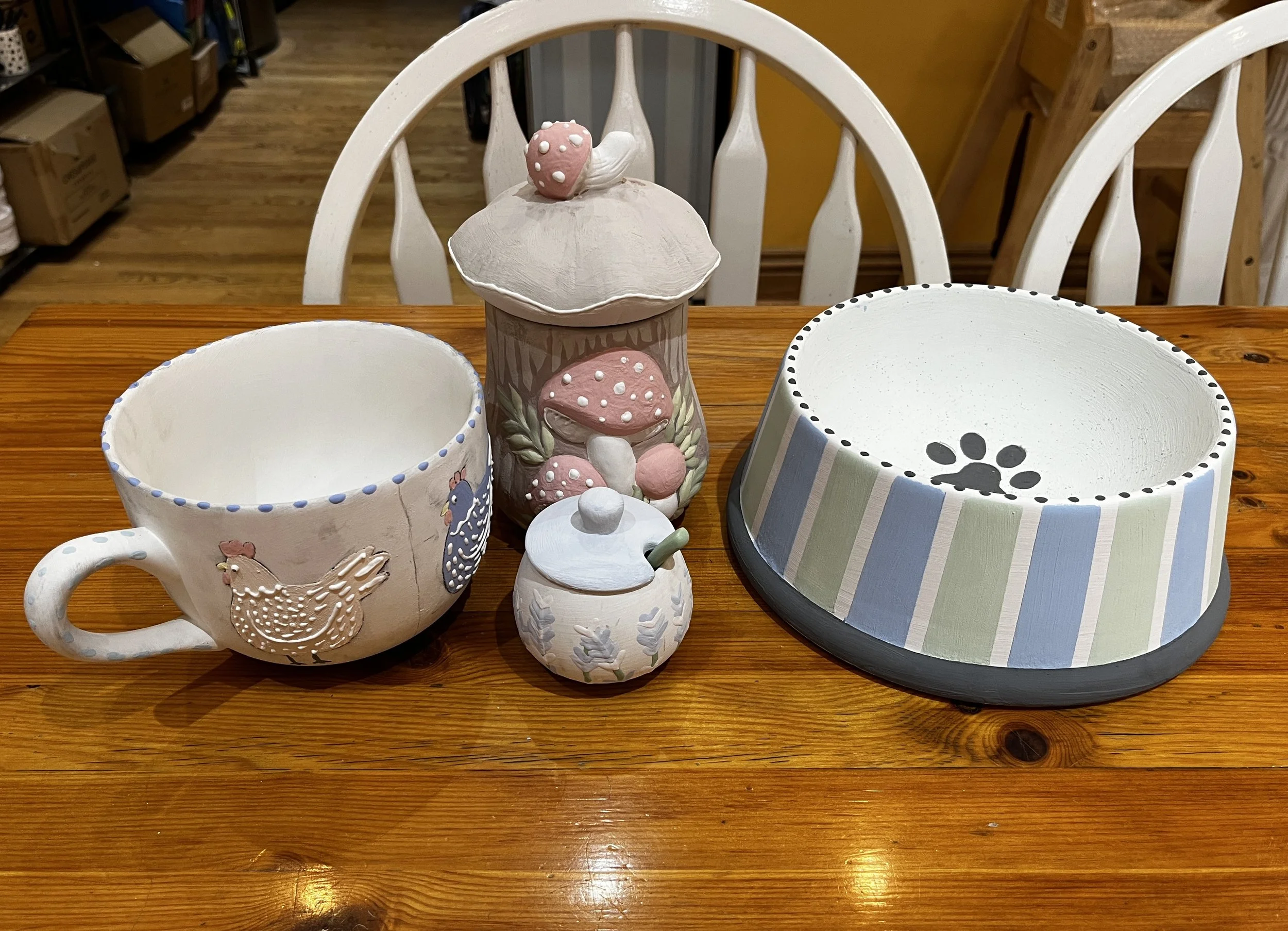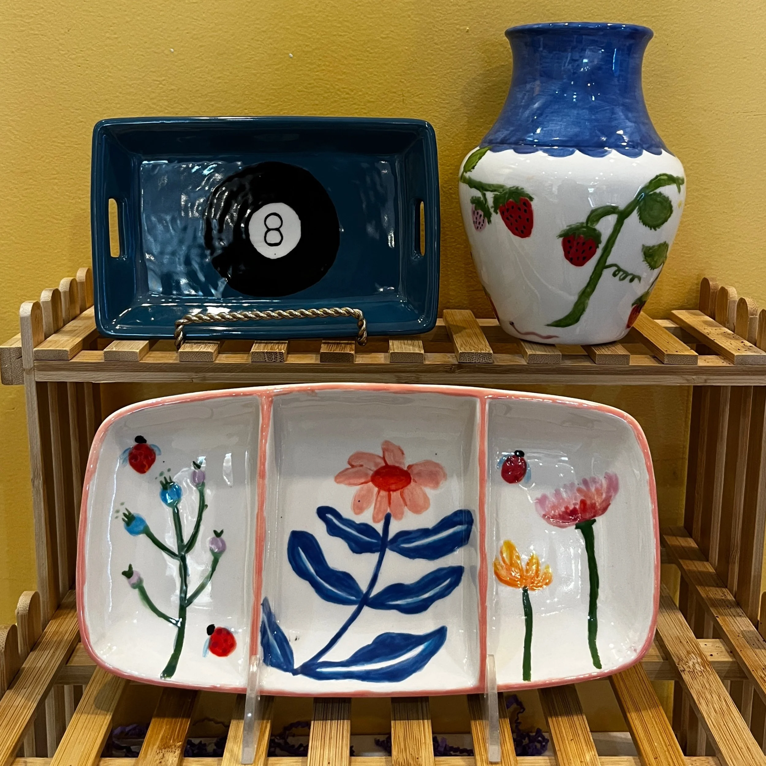 Take a look at the beautiful pieces our painters have created and get inspired to paint something yourself! We have a selection of over 150 pieces and have a rotating selection of seasonal and holiday pieces.
