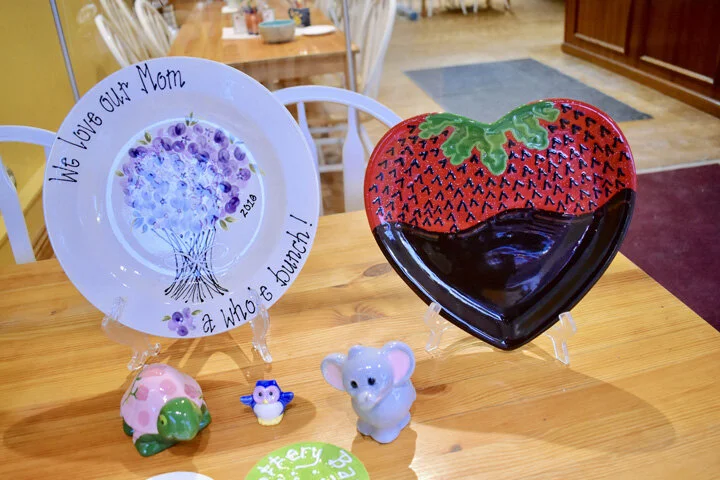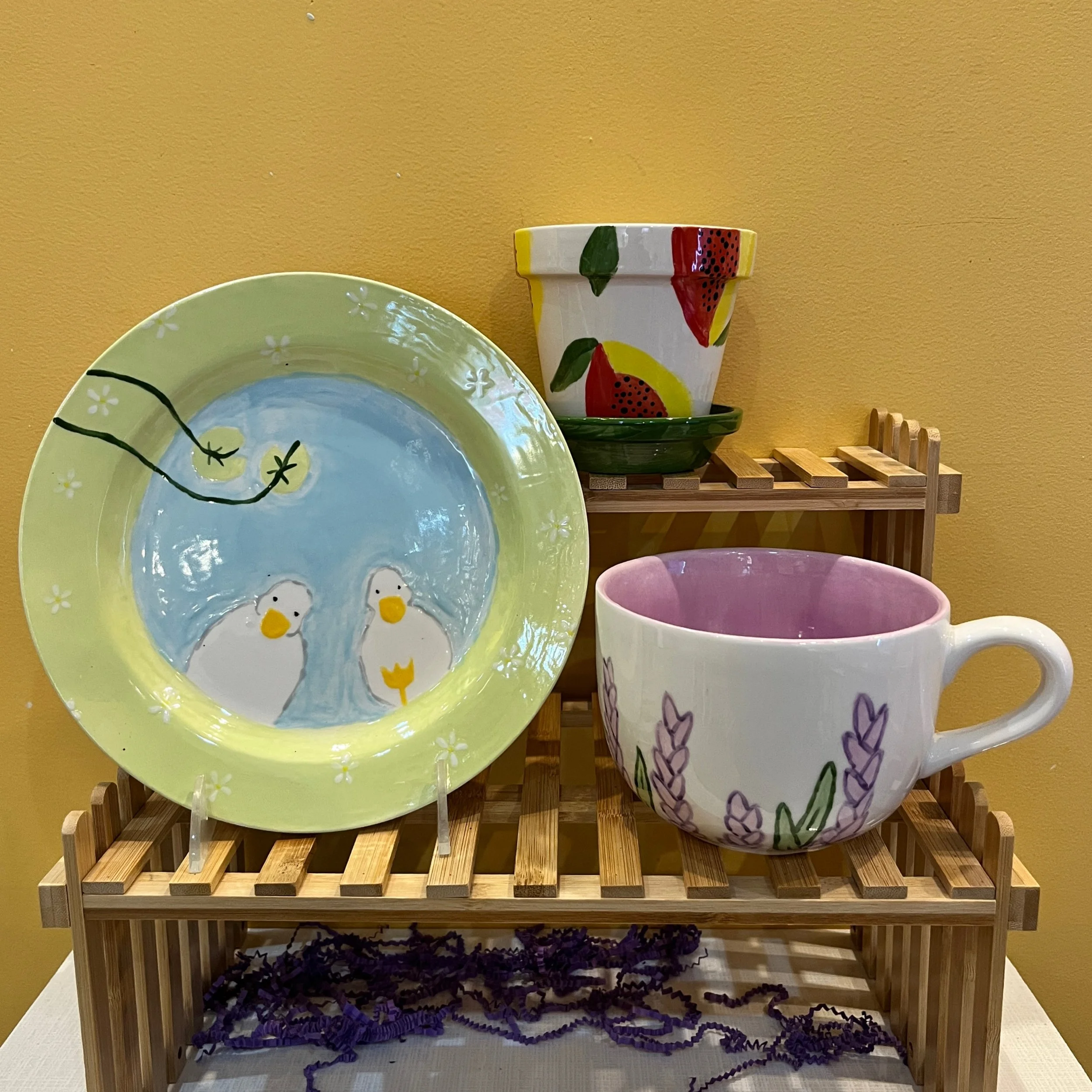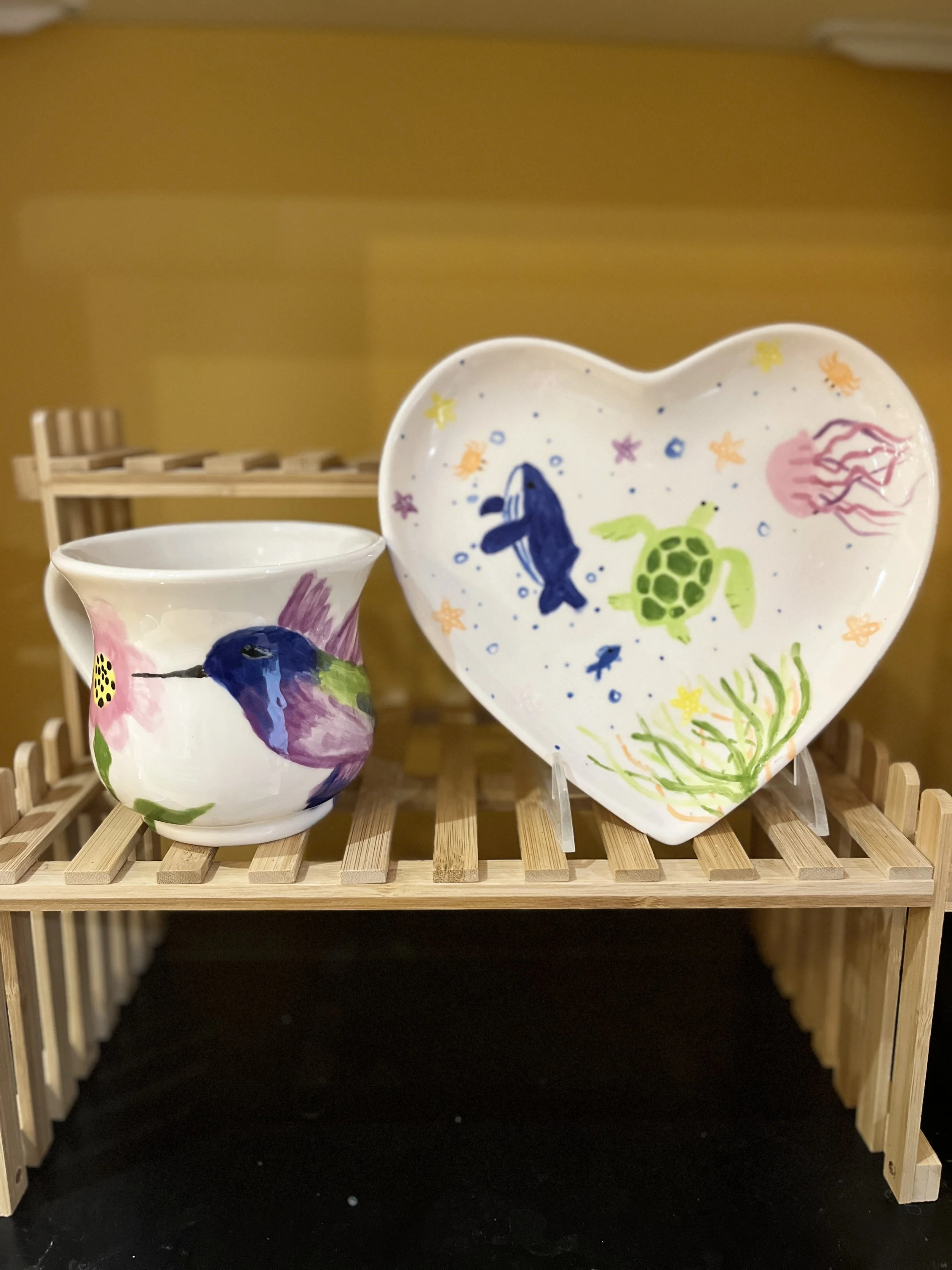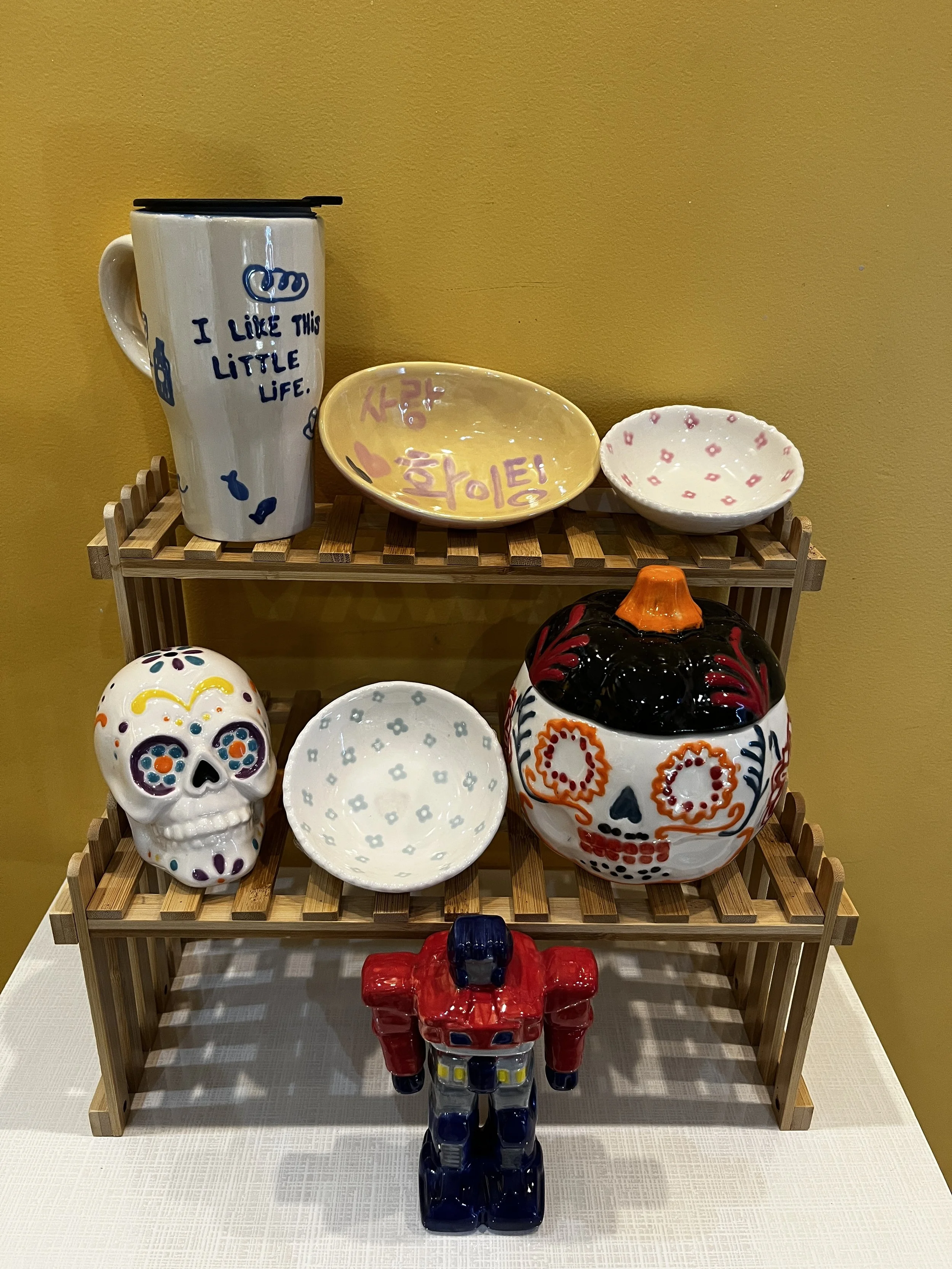 Take a look at the beautiful pieces our painters have created and get inspired to paint something yourself! We have a selection of over 150 pieces and have a rotating selection of seasonal and holiday pieces.